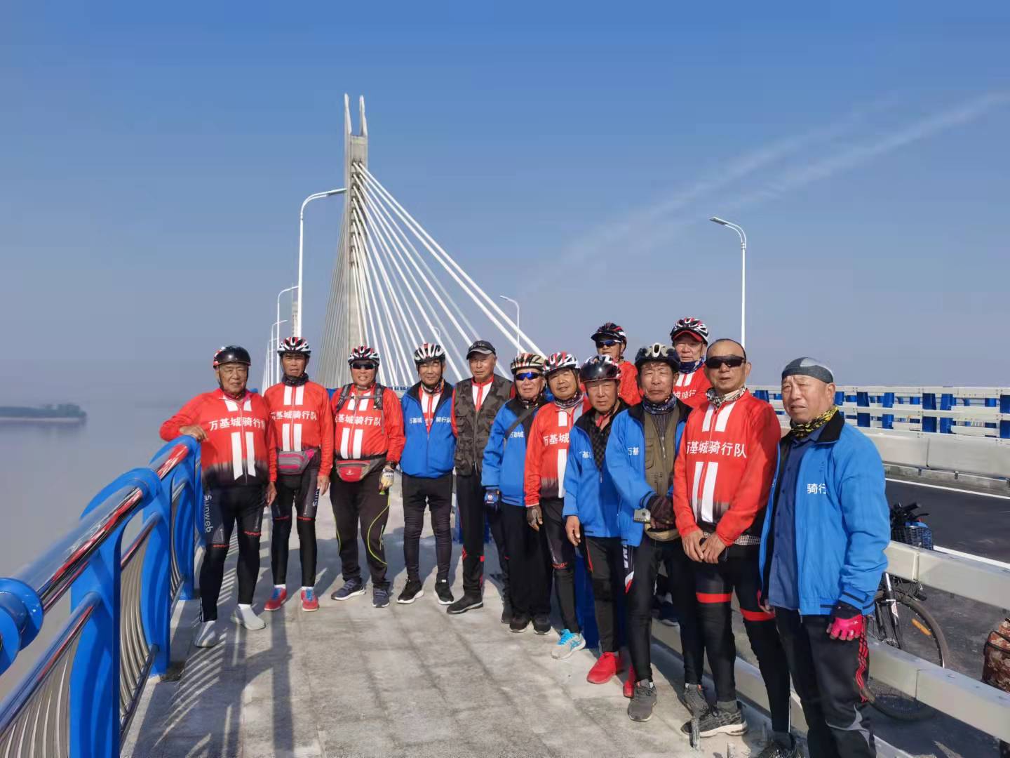 10月24日早上6點半,穿好騎行服、戴好頭盔,背著裝有水杯、必備藥的書包,周口“馬扎子”老年騎行隊隊長呂如意帶著14名平均年齡70歲的隊員從中心城區(qū)周項路口出發(fā)了。這次不同往日騎行,他們計劃用7天的時間騎行至安徽省巢湖市,7天900公里出豫進皖,這次遠游,注定難忘?!?5號,全長4000米的瓦埠湖大橋剛通車,我們正好趕上了,能夠騎行在如此壯觀的大橋上還是挺幸運的,風(fēng)景真好。”呂如意介紹,他們一路走過了安徽壽城古城門、八里河風(fēng)景區(qū)、合肥渡江紀(jì)念館、巢湖、長臨河古街道、瓦埠湖大橋。31日下午,騎行隊一行平安歸周?!斑@次騎行,氣候溫和,路況也好,很順利?!眳稳缫庹f。