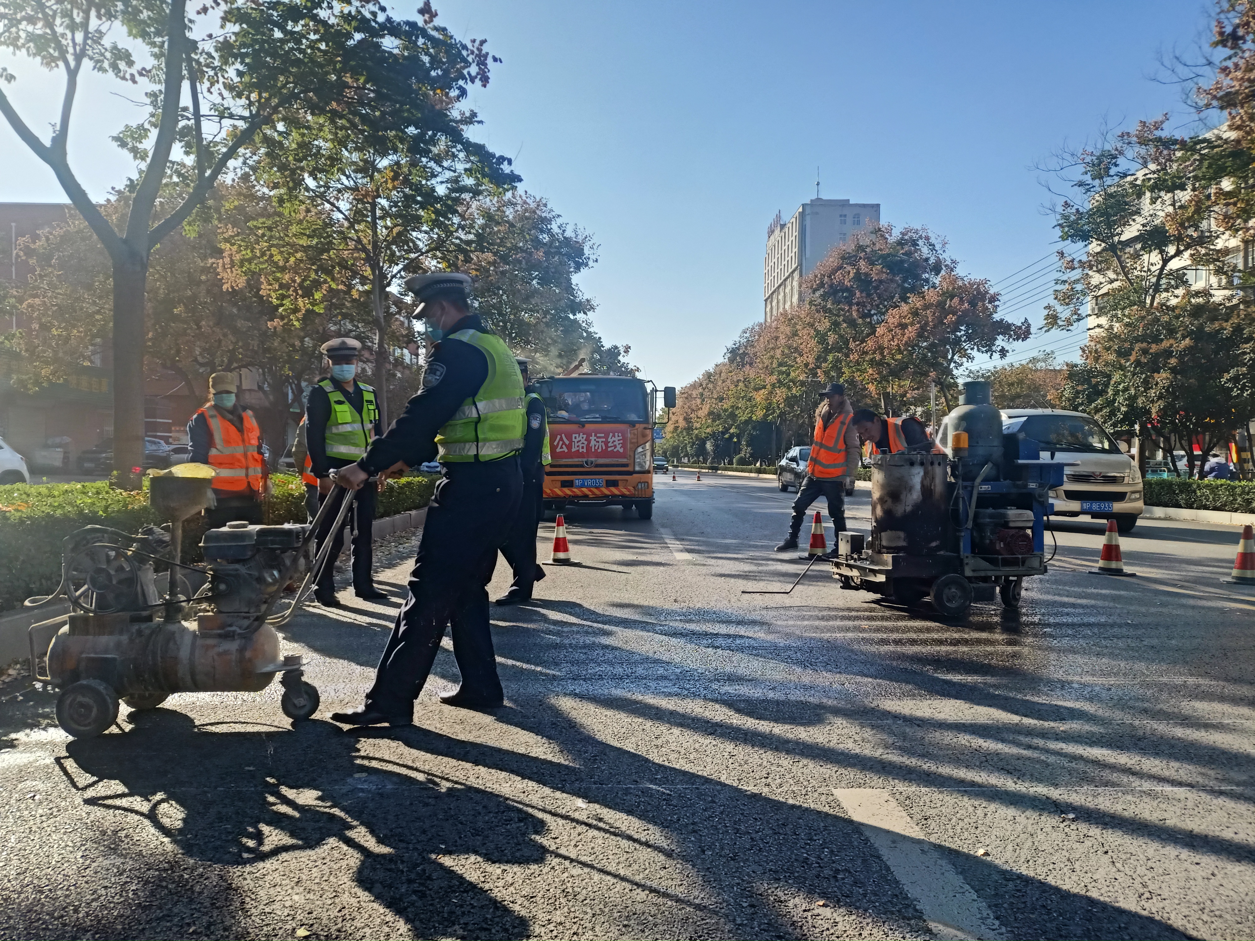 當(dāng)日下午,記者在黃河路看到,施工人員正在熟練地操作標(biāo)線機(jī),認(rèn)真細(xì)致地施劃減速震蕩標(biāo)線。市公安局交通管理支隊(duì)設(shè)施維護(hù)中心(以下簡(jiǎn)稱設(shè)施維護(hù)中心)工作人員黃勇說:“在創(chuàng)文期間,設(shè)施維護(hù)中心加大對(duì)道路護(hù)欄的清洗力度,完善交通信號(hào)燈的維護(hù),清除學(xué)校門口不合理的停車位,修剪遮擋交通設(shè)施的樹枝,排除路口的交通隱患?!?/p>