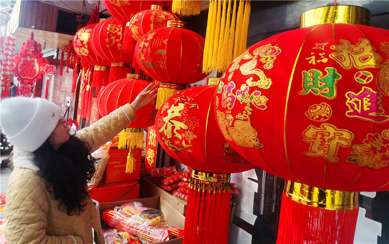 1月27日,市民在認真挑選著新年的裝飾品。春節(jié)臨近,虎年生肖飾品、對聯(lián)、中國結、福字、大紅燈籠等“紅色年貨”火了年貨市場。據(jù)了解,各種寓意祥和的春聯(lián)、以老虎為主題的各種窗花、各種飾品最受市民歡迎。③10