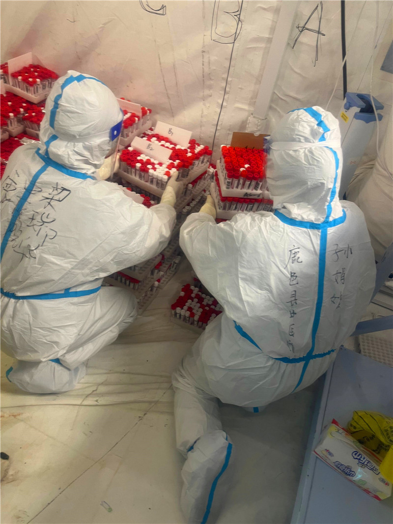 3月22日夜,焦健被一陣電話(huà)鈴聲驚醒,是緊急通知,要求次日凌晨3點(diǎn)在區(qū)衛(wèi)健委集合,前往太康支援核酸檢測(cè)。