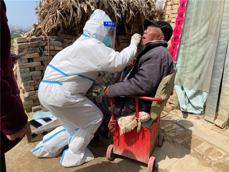 3月23日至4月13日,喬晶每天凌晨出發(fā),穿著密閉的防護(hù)服連續(xù)22天在太康馬廠(chǎng)工作。4月2日起,所有行政村實(shí)行入戶(hù)采集。從全民采樣到入戶(hù)采樣、封控人員實(shí)行一戶(hù)一管、重點(diǎn)管控人員一人一管、二十人混管到單管,加之村莊大、人員居住分散等,喬晶和她的同事面臨的是巨大挑戰(zhàn)!援太期間,每天都是30多攝氏度的高溫天氣,喬晶穿著密不透風(fēng)的防護(hù)服,戴著防護(hù)帽、防護(hù)面屏、口罩、手套,幾分鐘便汗如雨下。對(duì)此,她無(wú)怨無(wú)悔。