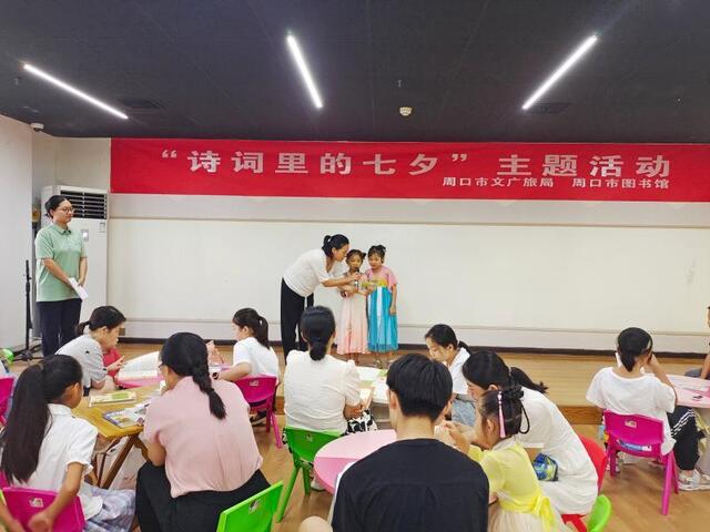 七夕今宵看碧霄,牽牛織女渡河橋。8月20日,一場別開生面的“詩詞里的七夕”主題活動在周口市圖書館青少年活動中心舉行。書香覓詩詞、同心題詩詞、粘土畫詩詞……參與的孩子在詩情畫意中感受到中華傳統(tǒng)節(jié)日的內(nèi)涵。