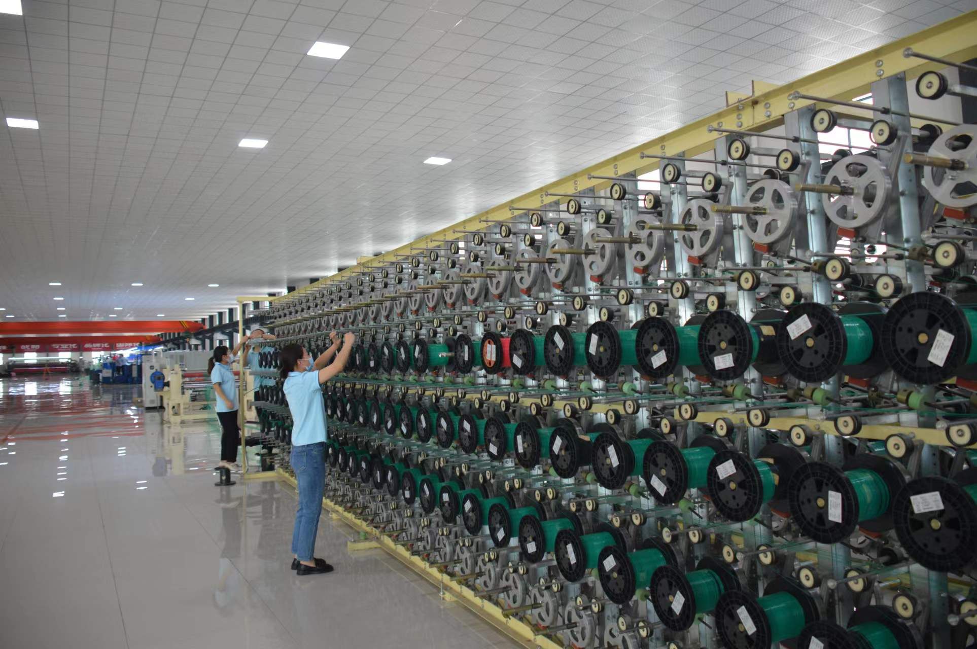 在經(jīng)濟開發(fā)區(qū)晶鑫科技生產(chǎn)車間,只見高大寬敞的車間內(nèi),工人們在各自崗位上有條不紊地忙碌著。拉絲車間里,一臺大型編織機械運轉(zhuǎn)著,一名技術(shù)人員在操控臺上注視著屏幕?!斑@是剛引進的國外設(shè)備,生產(chǎn)效率很高?!避囬g負責(zé)人介紹說。在編織車間,工作人員馬杰通過顯示屏正在熟練地操作著一臺編織機?!斑@臺機器比人工效率要高出好多倍?!彼龑ψ约耗懿僮饕慌_技術(shù)要求很高的自動化生產(chǎn)設(shè)備感到特別自豪。“我們生產(chǎn)的聚酯網(wǎng)產(chǎn)品在市場上供不應(yīng)求?!避囬g負責(zé)人說。
