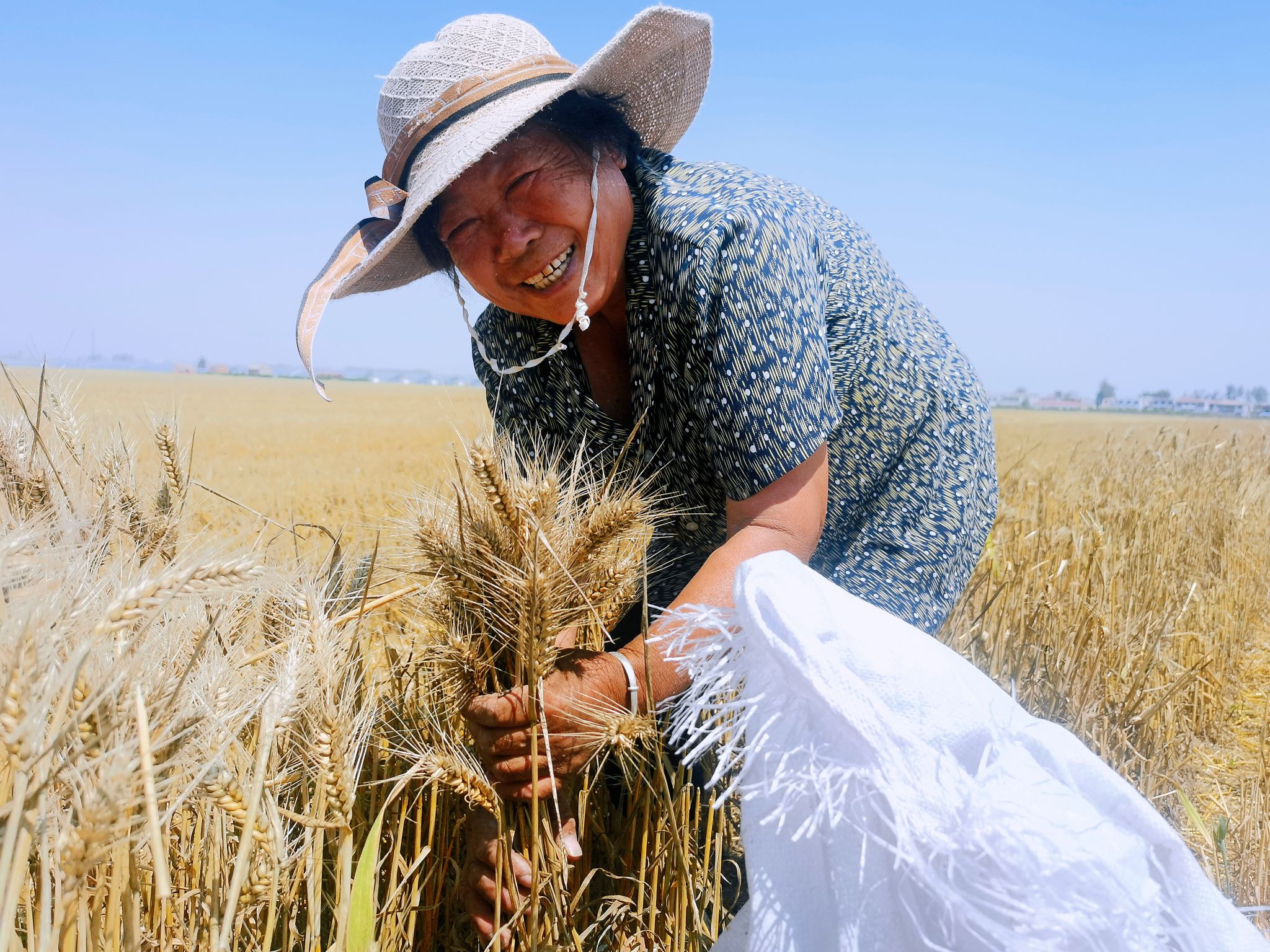 5月31日下午3時(shí)許,在許灣辦事處大張行政村村民田地里,收割機(jī)、點(diǎn)播機(jī)、拖拉機(jī)等農(nóng)用機(jī)械來往穿梭,村民手拿簸箕、木锨、掃帚等工具等待在地頭邊,收割下來的麥子被迅速攤開在道路上,方便晾曬?!鞍炒逡还?10多畝地今天就能收完,2天就能曬干,壓在心口上的大石頭可算落了地?!笔痉秴^(qū)許灣辦事處大張行政村村民鄭乃福說。