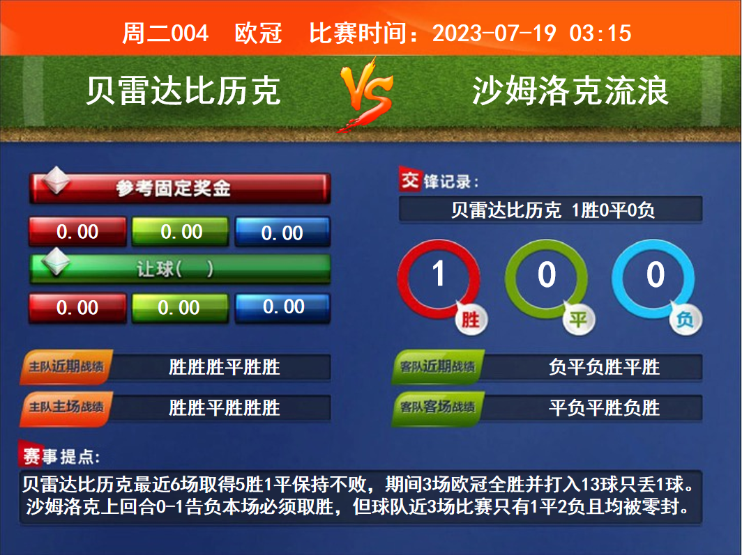 周二004 歐冠 貝雷達(dá)比歷克VS沙姆洛克流浪