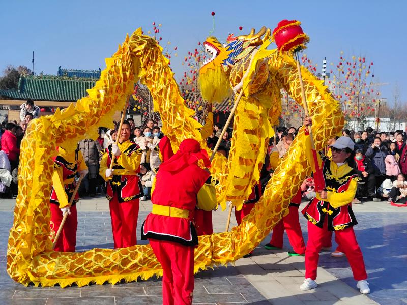 2月9日,在周口首屆“三川十館·春會”歷史街區(qū)關(guān)帝廟廣場上,精彩紛呈的劃旱船、抖空竹、舞鞭陀龍等民俗表演節(jié)目向游客送去了春節(jié)的美好祝福。人們在春會的各個活動板塊,趕大集、賞民俗,喜迎新年的到來。