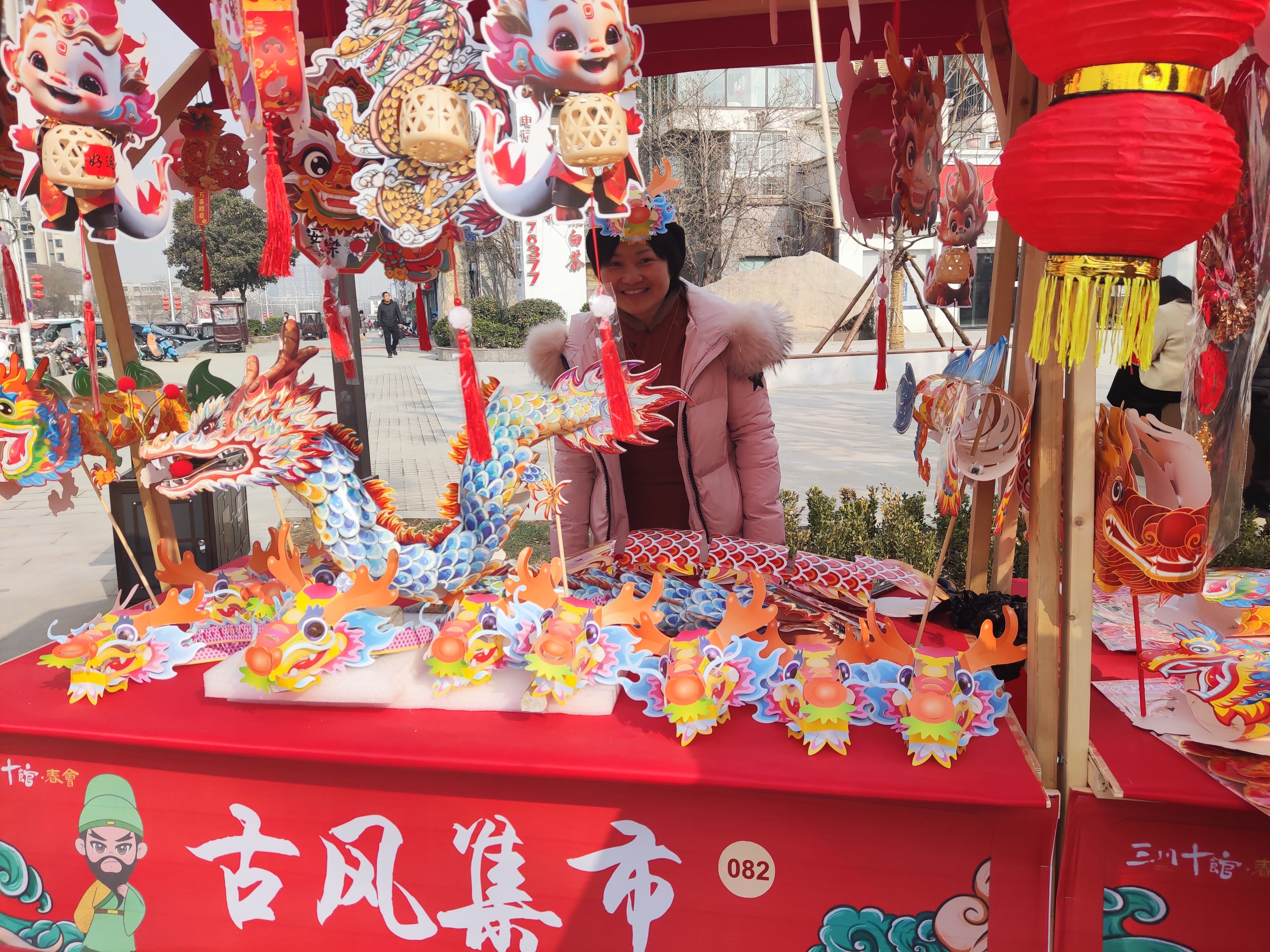 2月12日,關(guān)帝廟歷史街區(qū)的“古風(fēng)集市”上,人來人往、熙熙攘攘,布老虎、泥泥狗、剪紙、糖人等具有周口特色的非遺產(chǎn)品烘托出濃濃的年味,吸引大量游客前來欣賞、購買。