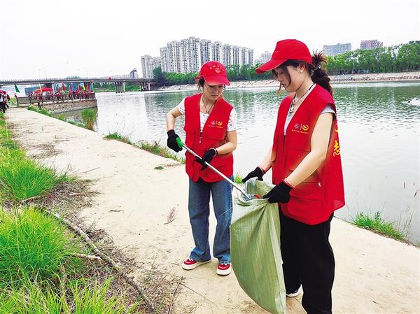 6月2日,我市200余名環(huán)保志愿者在沙潁河中心城區(qū)段周口大道橋東側(cè)巡河護水、清理岸邊雜物、打撈河面漂浮物。