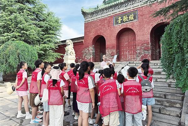 講解員為“小小講解員”集中培訓(xùn)。8月11日,太昊伏羲陵文化旅游區(qū)“小小講解員”培訓(xùn)活動(dòng)圓滿落幕。此次活動(dòng)中,淮陽(yáng)區(qū)30余名青少年懷揣著對(duì)家鄉(xiāng)文化的熱愛(ài),經(jīng)過(guò)為期一周的集中培訓(xùn),具備基本的講解能力,為傳承淮陽(yáng)千年文脈注入了新鮮血液。記者 侯俊豫 通訊員 莊秋薇 攝