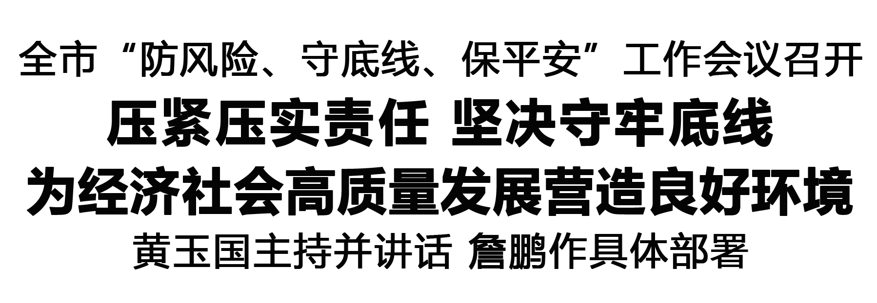 本報訊 (記者 王艷) 2025年12月31日,全市“防風(fēng)險、守底線、保平安”工作會議召開,專題研究部署歲末年初重點領(lǐng)域安全穩(wěn)定工作,釋放從開頭抓緊抓實、保持高壓態(tài)勢的鮮明信號,推動全市廣大黨員干部思想上高度重視、行動上高度自覺,有效防范化解各類風(fēng)險,牢牢守住底線紅線,為全市經(jīng)濟社會高質(zhì)量發(fā)展?fàn)I造良好環(huán)境。市委書記黃玉國主持會議并講話。市長詹鵬作具體部署。