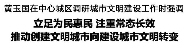 調(diào)研中,黃玉國強(qiáng)調(diào),從創(chuàng)建文明城市到建設(shè)城市文明,是工作理念的轉(zhuǎn)變,也是工作實(shí)踐的深化拓展。要更加注重常態(tài)長效,堅持融入日常、抓在經(jīng)常,強(qiáng)化機(jī)制保障,鞏固拓展文明城市創(chuàng)建成果。要更加注重精細(xì)治理,強(qiáng)化問題導(dǎo)向,下足“繡花功夫”,提升網(wǎng)格化管理服務(wù)質(zhì)效,讓群眾生活更方便、更舒心。要更加注重成風(fēng)化人,大力培育和踐行社會主義核心價值觀,加強(qiáng)教育引導(dǎo)和典型選樹,堅持法治和德治相結(jié)合,弘揚(yáng)崇德向善的文明風(fēng)尚,不斷提升市民文明素養(yǎng),讓文明內(nèi)化于心、外化于行。要更加注重全民參與,堅持問計于民、問需于民、問效于民,搭建參與平臺,凝聚多元合力,營造共建共治共享的良好氛圍。