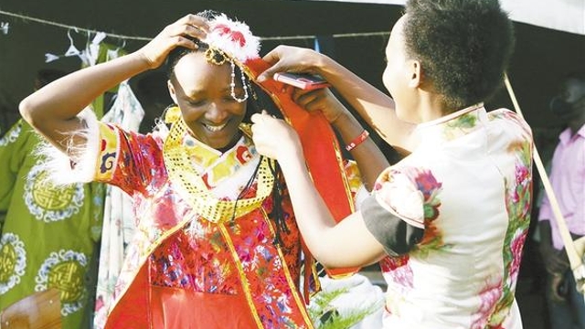 11月10日,學(xué)生在盧旺達(dá)卡永扎試穿中國服飾?!?a href="http://m.nysmokeshops.com/content/2021-11/13/content_959142.html" target="_blank" >[詳細(xì)]