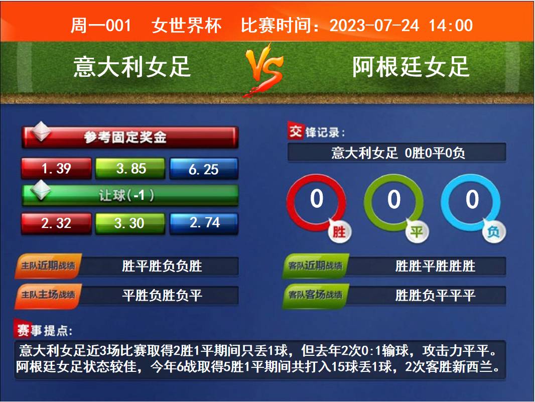 周一競彩足球強(qiáng)檔:意女足青春風(fēng)暴 德國女足有波動(dòng)