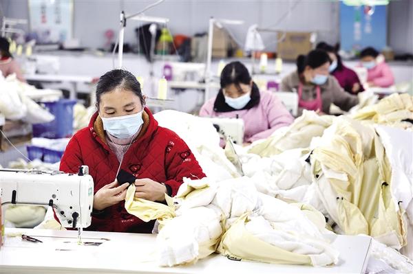 近年來(lái),淮陽(yáng)區(qū)四通鎮(zhèn)中營(yíng)子村以黨建為核心引擎,筑牢基層戰(zhàn)斗堡壘,牽頭建起現(xiàn)代農(nóng)業(yè)服務(wù)合作社、種植合作社等,走出“黨組織搭臺(tái)、企業(yè)唱戲、群眾受益”的強(qiáng)村路徑。圖為村民在村辦服裝廠(chǎng)工作。