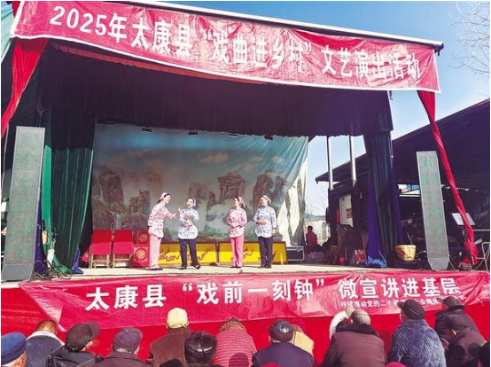 12月24日,太康縣道情藝術(shù)保護(hù)傳承中心組織演員來到該縣轉(zhuǎn)樓鎮(zhèn)李屯行政村,開展“戲前一刻鐘”微宣講進(jìn)基層活動。