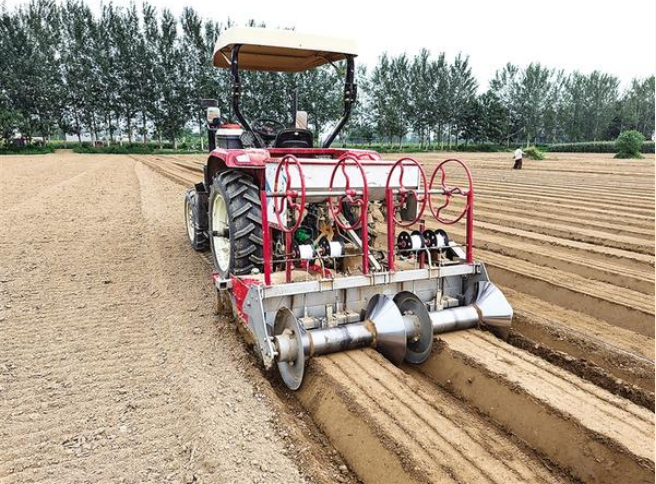?9月4日,在淮陽區(qū)臨蔡鎮(zhèn)吳金鋒家庭農(nóng)場種植基地,一臺(tái)集旋耕、施肥、起壟、播種于一體的北斗導(dǎo)航農(nóng)業(yè)機(jī)械正在播種蘿卜。
