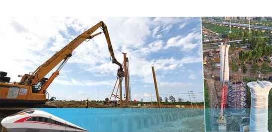 8月11日下午,中鐵十局工人在平漯周高鐵周口東站最后6.261公里項(xiàng)目工地冒高溫?fù)屪ミM(jìn)度。該標(biāo)段雖開工較晚(2025年3月進(jìn)駐),但主要工程正穩(wěn)步推進(jìn),保障了整體工期。