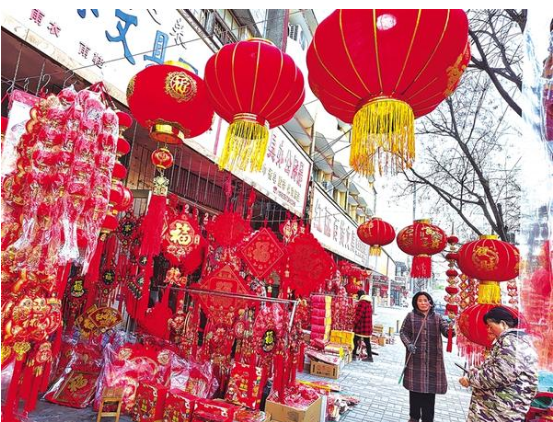 2月12日,市民在扶溝縣城一商店選購(gòu)新年飾品。馬年新春將至,市民紛紛走上街頭選購(gòu)各色年貨,在濃濃年味中喜迎新春。