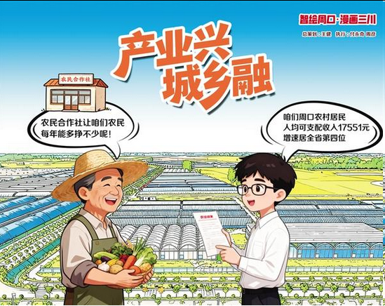 產(chǎn)業(yè)興旺是城鄉(xiāng)融合的核心動力。2024年,周口培育農(nóng)民合作社2.76萬家、家庭農(nóng)場3.95萬家、農(nóng)業(yè)社會化服務(wù)組織1.33萬個,農(nóng)村集體資產(chǎn)總額229.93億元,4893個村居均實現(xiàn)村集體經(jīng)濟(jì)收益5萬元以上,農(nóng)村居民人均可支配收入17551元、增速居全省第四位。
