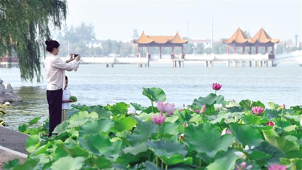 夏天的淮陽就像一幅寫意畫卷,在清涼的湖風吹拂下徐徐展開。登上龍湖邊的六藝閣,遠處的古城,臥波的大橋,近處的荷花,搖曳的蘆葦,仿古的碼頭,靜泊的游船,歸巢的飛鳥……放眼處,無不令人陶醉其間。