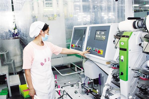 近年來(lái),太康縣加大制造業(yè)智能化改造力度,引導(dǎo)企業(yè)對(duì)老舊生產(chǎn)設(shè)備進(jìn)行升級(jí),進(jìn)一步提高工作效率。圖為河南通泰紡織有限公司工作人員操作智能化設(shè)備。