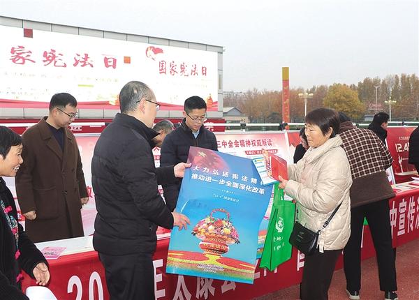 近日,太康多個單位在縣人民廣場舉行“12·4”國家憲法日集中宣傳活動,向廣大群眾普及憲法知識,引導廣大群眾牢固樹立憲法意識、維護憲法權(quán)威。縣長張峰,縣領導邱范卉、劉鳳芹、王洪彬、史耀閣等到場參觀指導。