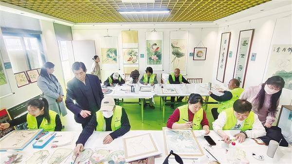 近日,淮陽區(qū)王店街道王樓村村民在美術(shù)老師的指導下畫荷花。作為遠近聞名的“畫荷村”,王樓村一直延續(xù)著畫荷花的傳統(tǒng)。農(nóng)閑時,村民經(jīng)常在老師的指導下學習繪畫技巧,將鄉(xiāng)村生活的恬靜與荷花的靈動融入筆墨之間。