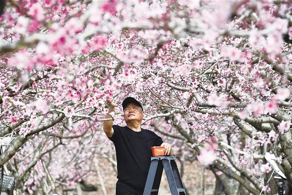 3月23日上午,工作人員為桃花授粉。近日,川匯區(qū)園藝中心的200多畝桃花競相開放,宛如世外桃源。隨著天氣逐漸轉(zhuǎn)暖,桃花、油菜花持續(xù)盛開,周口進入“賞花模式”。