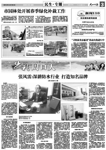 目前,張風(fēng)雷領(lǐng)軍的企業(yè)集團(tuán)正籌備擴(kuò)建新的廠(chǎng)房、引進(jìn)新的先進(jìn)生產(chǎn)線(xiàn),向生產(chǎn)高科技含量的新型環(huán)保卷材進(jìn)軍。他誓言用未來(lái)5年或10年的努力,打造出一個(gè)由河南人主營(yíng)的國(guó)內(nèi)防水材料知名品牌。