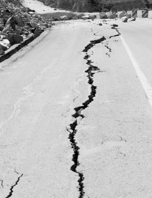 4月26日,318國道聶拉木縣城至樟木鎮(zhèn)15公里處路面開裂。新華社發(fā)