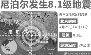 尼泊爾政府宣布境內(nèi)29個(gè)地區(qū)為地震重災(zāi)區(qū),并號召全國人民積極展開自救。