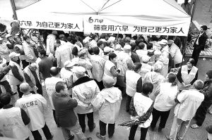 環(huán)衛(wèi)工人在活動(dòng)現(xiàn)場領(lǐng)取檢測試劑