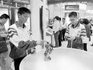 全國(guó)教育信息化應(yīng)用展覽在青島舉行      5月24日,兩名中學(xué)生在展覽上體驗(yàn)操作機(jī)器人。由教育部、聯(lián)合國(guó)教科文組織、中國(guó)聯(lián)合國(guó)教科文組織全委會(huì)主辦,青島市人民政府承辦的全國(guó)教育信息化應(yīng)用展覽,于5月23日至25日在青島舉辦。新華社記者 張旭東 攝