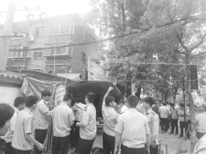 ②出店占道經(jīng)營(yíng)的棚子被強(qiáng)制拆除。