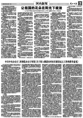 中共中央辦公廳、國務院辦公廳印發(fā)《關于深入推進農(nóng)村社區(qū)建設試點工作的指導意見》