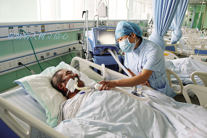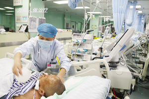 當(dāng)然,護(hù)理工作并非一帆風(fēng)順。眾所周知,ICU收治的都是重癥患者,患者大多數(shù)都有精神障礙,譫妄、昏迷、煩躁不安等狀況很常見,這就需要護(hù)士們充滿耐心和愛心。張衛(wèi)華以實(shí)際行動(dòng)詮釋人間大愛。2014年8月,科室里來了一名Ⅱ級(jí)肝性腦病的男性患者,已經(jīng)精神錯(cuò)亂且不認(rèn)人,行為非常危險(xiǎn)。由于該病不能使用鎮(zhèn)靜藥物,當(dāng)責(zé)任護(hù)士靠近患者時(shí),患者拿起床頭柜上的一個(gè)玻璃瓶向護(hù)士砸去。作為護(hù)士長的張衛(wèi)華見此情景,臨危不懼,用自己的身軀保護(hù)責(zé)任護(hù)士。只聽見啪的一聲,鮮血順著她的臉頰流了下來,可她還是慢慢走向那名患者,輕聲向他解釋情況以安撫其情緒?;颊叩那榫w漸漸地穩(wěn)定下來,她才去處理傷口,并輕松地說:“只要沒傷著病人就好?!庇幸淮危剖依飦砹艘幻墓W≡旱睦先?,老人的孩子都在外地,得知老人生病住院也沒趕回來照顧,甚至連一句問候都沒有。老人除了要忍受著病痛的折磨,還要忍受對(duì)孩子們的思念。張衛(wèi)華見此情景,非常心疼,為安慰老人,上班期間她都會(huì)去陪老人聊天,哄老人開心。老人吵著不舒服的時(shí)候,張衛(wèi)華用藥緩解,同時(shí)耐心安撫老人。晚上老人因?yàn)楹⒆拥氖虑椋瑫?huì)像一個(gè)小孩兒一樣哭泣不止,張衛(wèi)華心疼地陪在老人身邊,一遍又一遍地安慰說:“別害怕,我在您身邊,我就是您的女兒。”