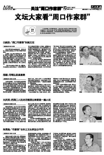 對(duì)于“周口作家群”崛起現(xiàn)象,劉慶邦說,自己雖然是周口的本土作家,但對(duì)于周口的“作家群”能撐起一片天地,起初并不抱有多大希望,因?yàn)樵谖膶W(xué)豫軍里,數(shù)南陽(yáng)的“作家群”名氣最大,也是一支比較有實(shí)力的作家隊(duì)伍。直到2005年應(yīng)地方政府之邀,他回周口參加了“‘周口作家群’研討會(huì)”,也就是從那個(gè)時(shí)候開始很認(rèn)真地閱讀了周口本地每個(gè)作家的作品,真是不看不知道,一看嚇一跳,在周口這塊并不發(fā)達(dá)的土地上竟然活躍著幾百名作家,老中青相結(jié)合,而且優(yōu)秀的作品呈逐年遞增的態(tài)勢(shì),說來可真是欣喜加驚喜。