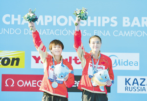 中國跳水隊在上屆世錦賽上包攬全部(10塊)金牌。吳敏霞當時與何姿搭檔奪得該項目冠軍。此次,她與施廷懋的“以老帶新”組合也為“夢之隊”的衛(wèi)冕之旅取得開門紅。