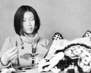 鹿邑的虎頭鞋、虎頭帽也是省級(jí)非遺項(xiàng)目,一名游客在現(xiàn)場學(xué)習(xí)制作時(shí),一時(shí)不知從哪兒下手。   ▲