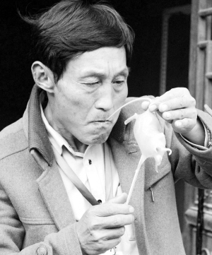省級(jí)非遺項(xiàng)目滑縣馬氏吹糖人第十六代傳承人馬電坤現(xiàn)場表演吹糖人。